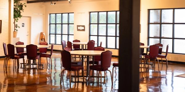 The top rentable space in the community for upscale events such as weddings, receptions, reunions and conferences. Tables and chairs are included with a fully functional catering kitchen and bar space. Other amenities are available for rent, including tablecloths, A/V equipment and stage. Capacity: 200
